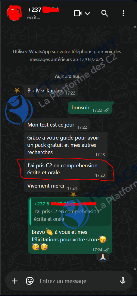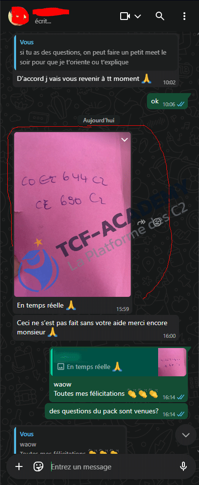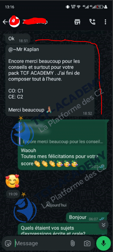 🇩🇿 Algerie“ J'avais déjà tenté le TCF sans succès, mais après m'être fait suivre par les formateurs de TCF-ACADEMY, j'ai décroché un C2 en expression ecrite et C1 pour les autres modules ”