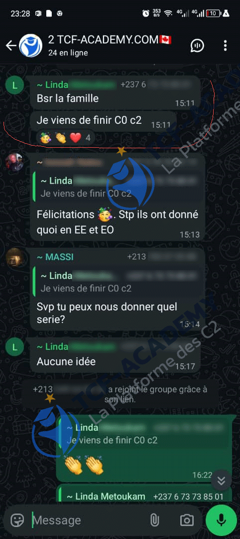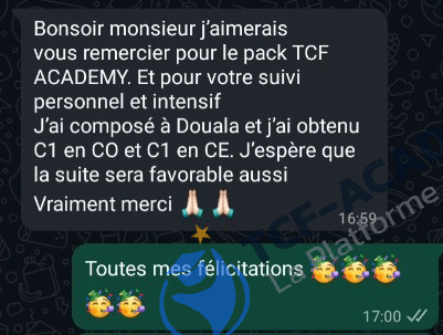 “ Grâce à TCF-ACADEMY, j'ai pu obtenir un score C2 dans les 4 modules du TCF Canada en seulement deux mois de préparation. Les tests authentiques et le coaching personnalisé m'ont permis d'identifier mes points faibles et de les améliorer efficacement. Un must pour tous ceux qui visent l'excellence ! ”